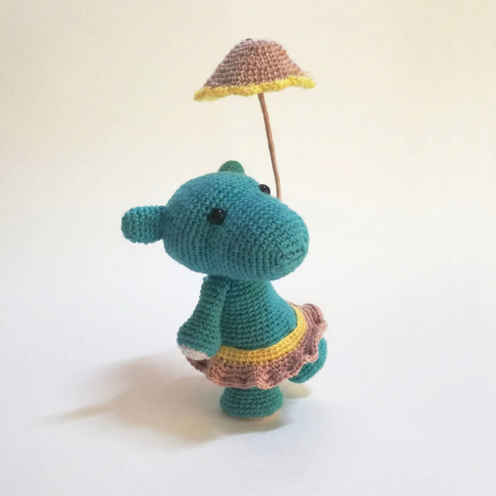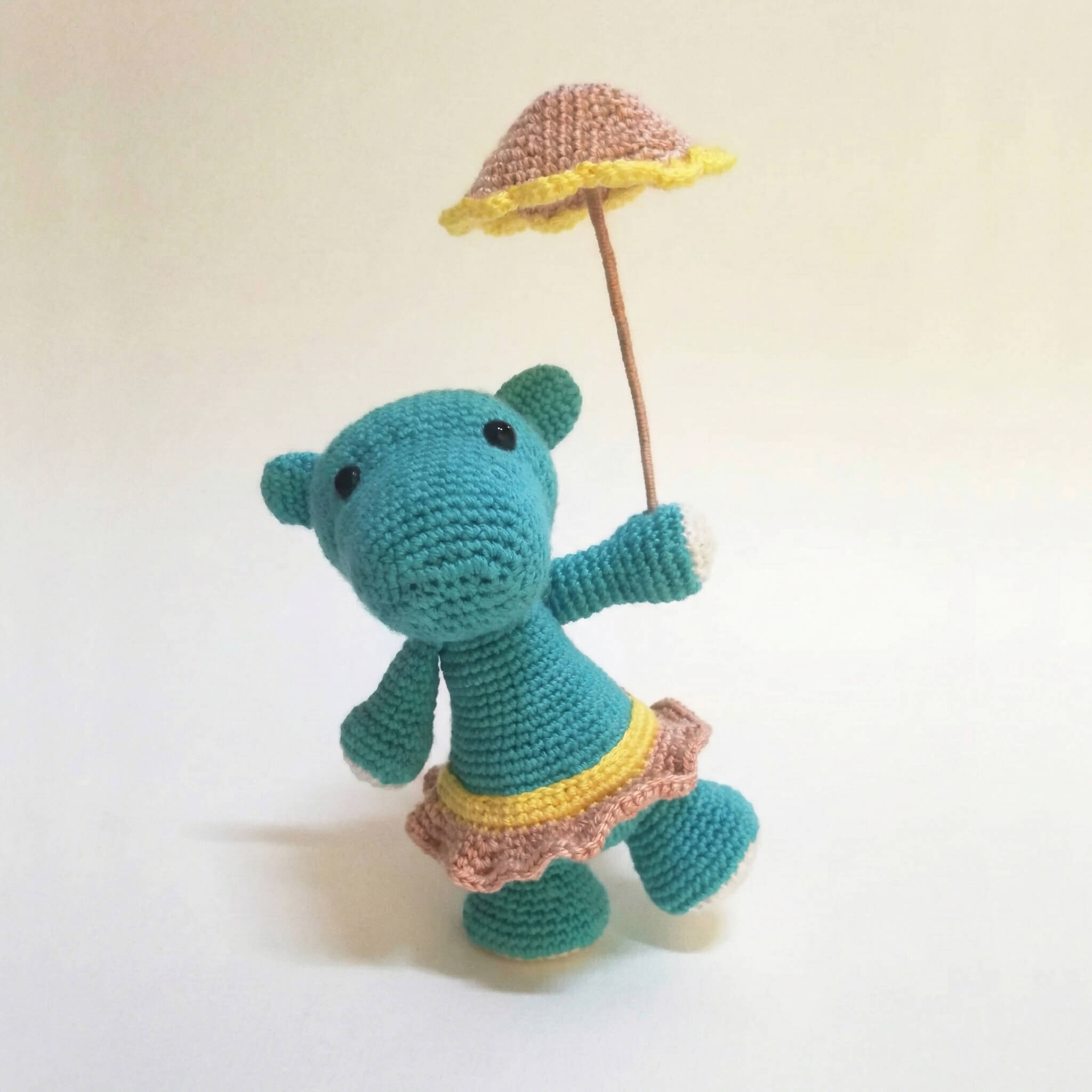 Tek Ayak Üstünde Duran Şemsiyeli Amigurumi Su Aygırı – El Yapımı Özel Tasarım
